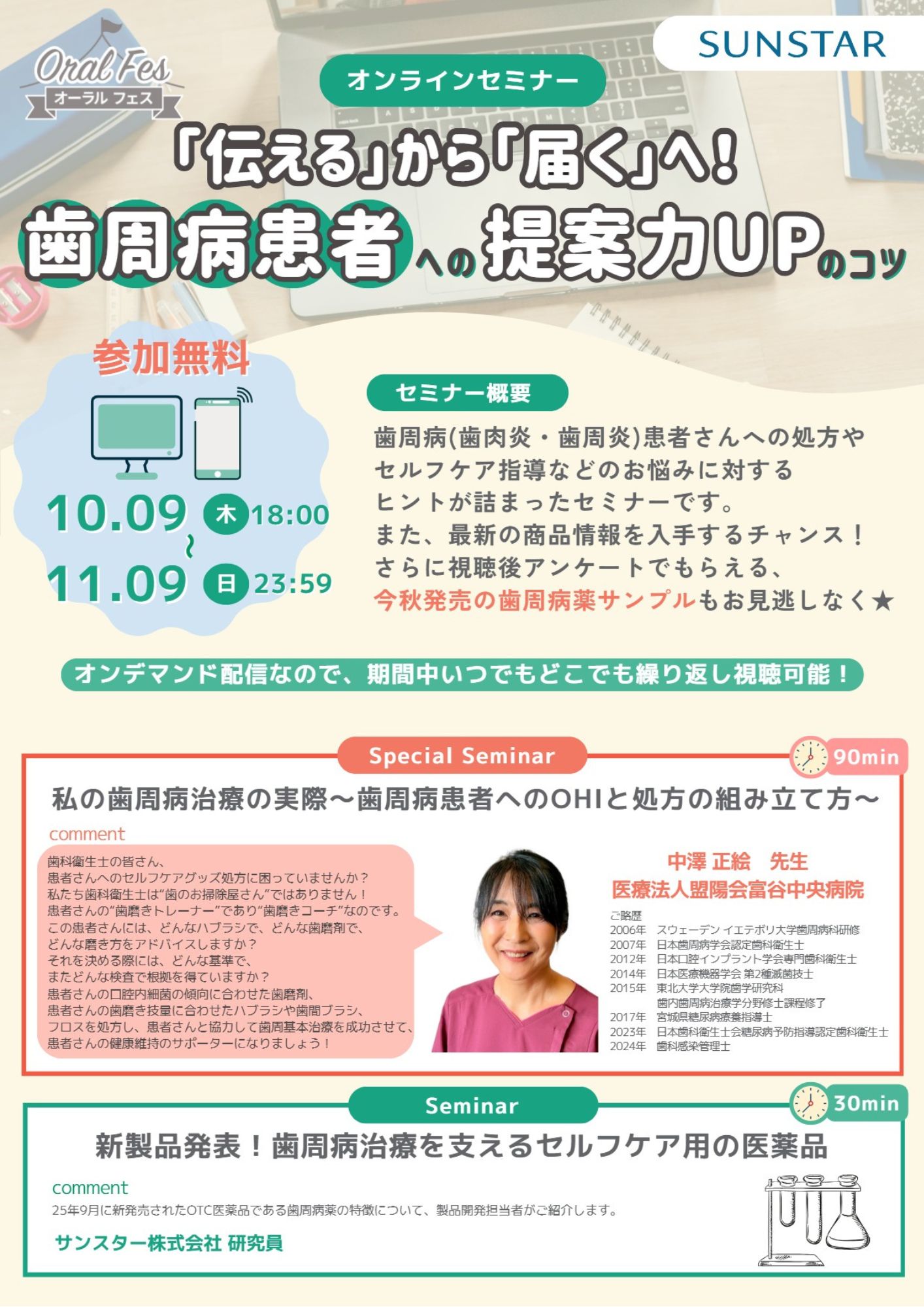 サンスター株式会社よりオンラインセミナーのお知らせがありましたので、ご案内いたします。