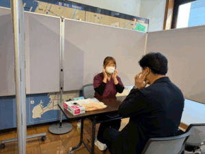 今回は、「はこだて防災マルシェ2025」にて、「災害時の口腔ケア〜水がない時どうする?〜避難所等での口腔管理の大切さを学ぼう」というテーマで、災害時を想定し、「水がない時の口腔ケア」「口腔乾燥を防ぐ唾液腺マッサージ」「水、歯ブラシがない時の口腔粘膜ケア」「義歯の洗浄方法」について、各ブースに分かれてお話しさせていただきました。