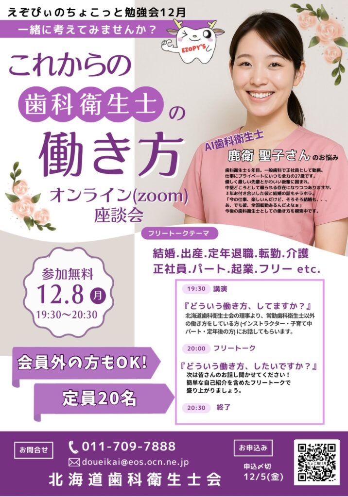 えぞぴぃのちょこっと勉強会 第4弾は「これからの歯科衛生士の働き方」です。