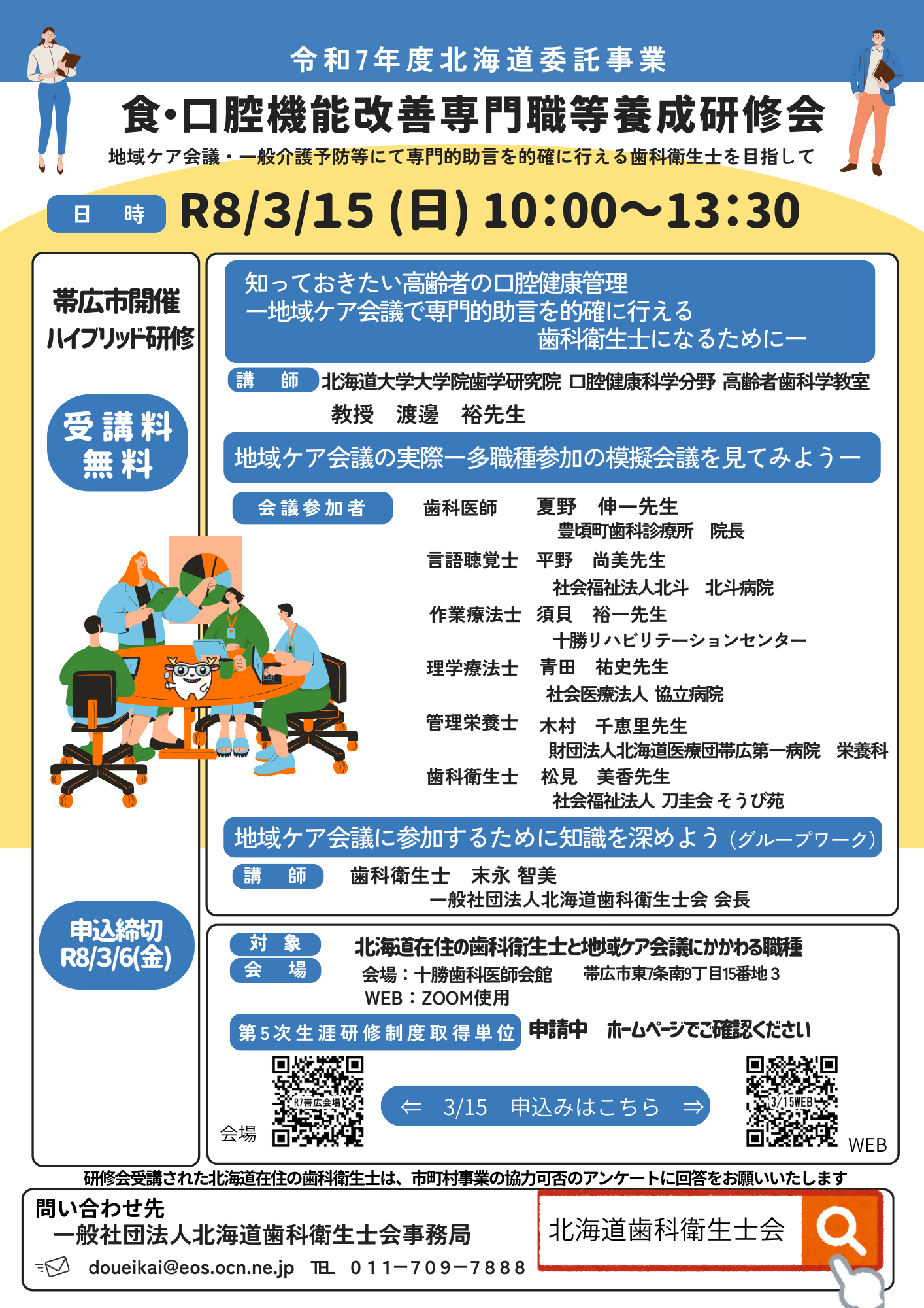 ★対 象 :北海道内の歯科衛生士・歯科医師・地域ケア会議に携わるすべての方
