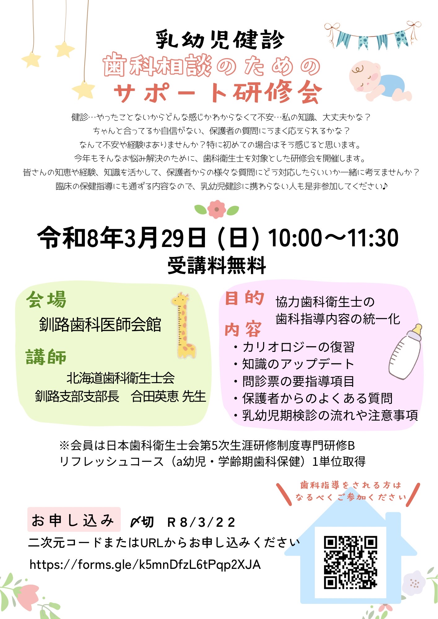 研修会名:乳幼児検診 歯科相談のためのサポート研修会